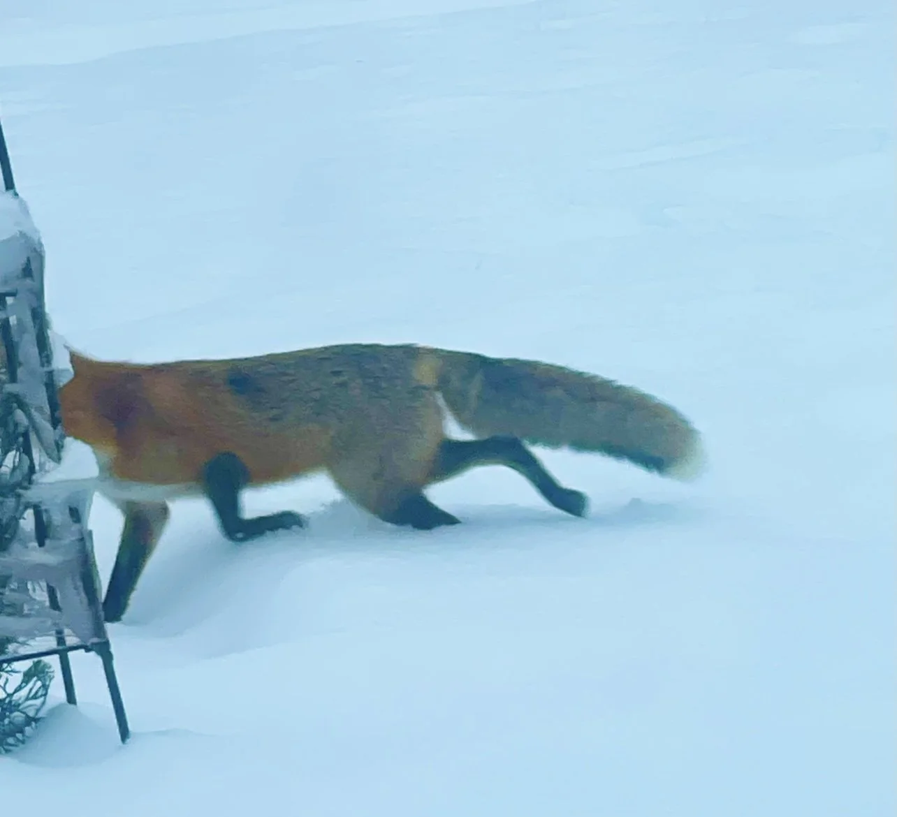 The foxes crouch down to hide broke–bursting berries.